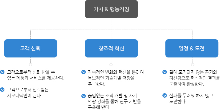 저희 엄격한 내부 규정과 현신적인 제품 개발을 고객 만족에 책임을 다하는 기업 문화로 고객으로부터 깊은 신뢰를 얻고자 합니다.