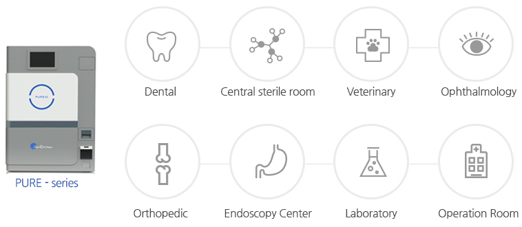 Pure 시리즈 플라즈마 멸균기는 수술 기구 내부의 10-6 SAL(10-6 Sterility Assurance Level)을 만족하기 위해 다양한 Lumen PCD로 테스트 하여 효과적인 멸균결과를 얻을 수 있습니다.